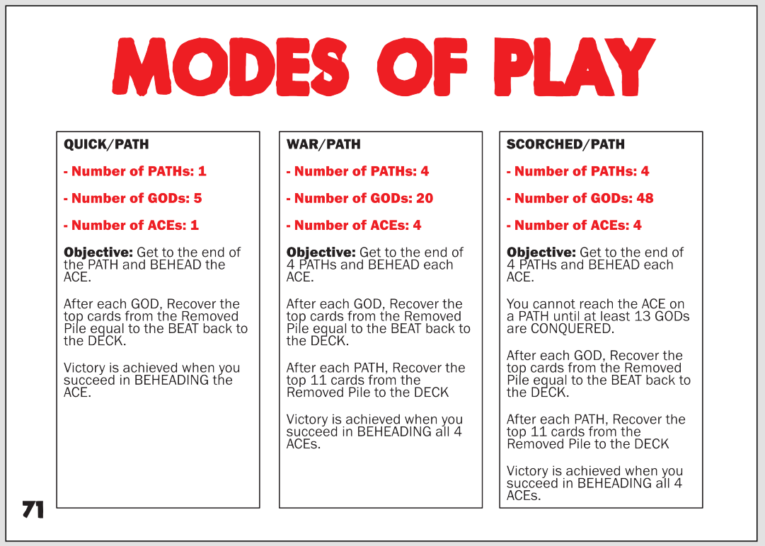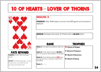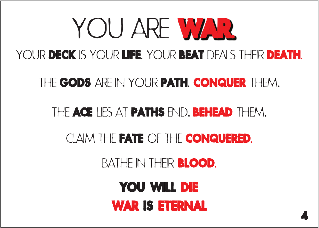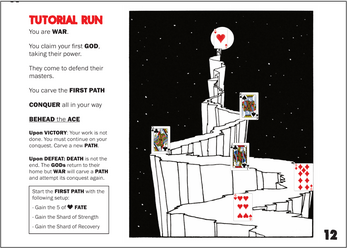 WAR/PATH is a Solo Playing Card Game for 1 Player. It plays in about 15-60 Minutes depending on the game mode selected. Inspired by Slay the Spire and Balatro, in the game you are WAR, seeking to behead the 4 ACES that rule over all other GODs and claim their power as your own.